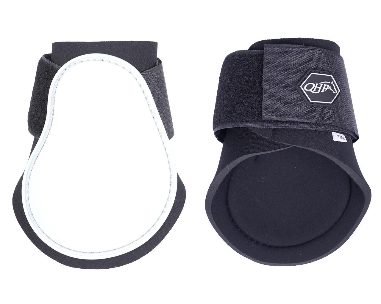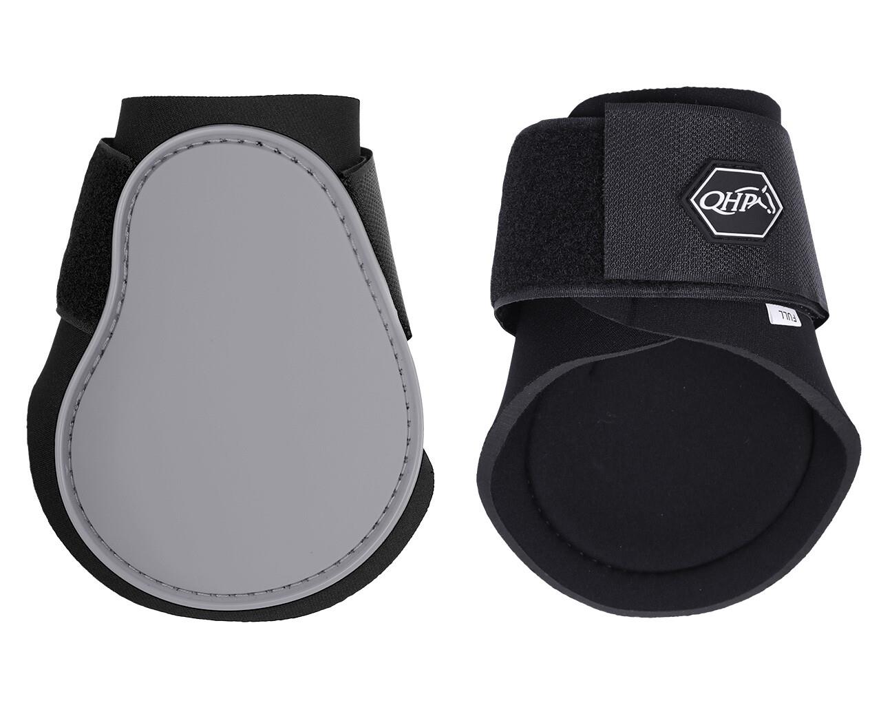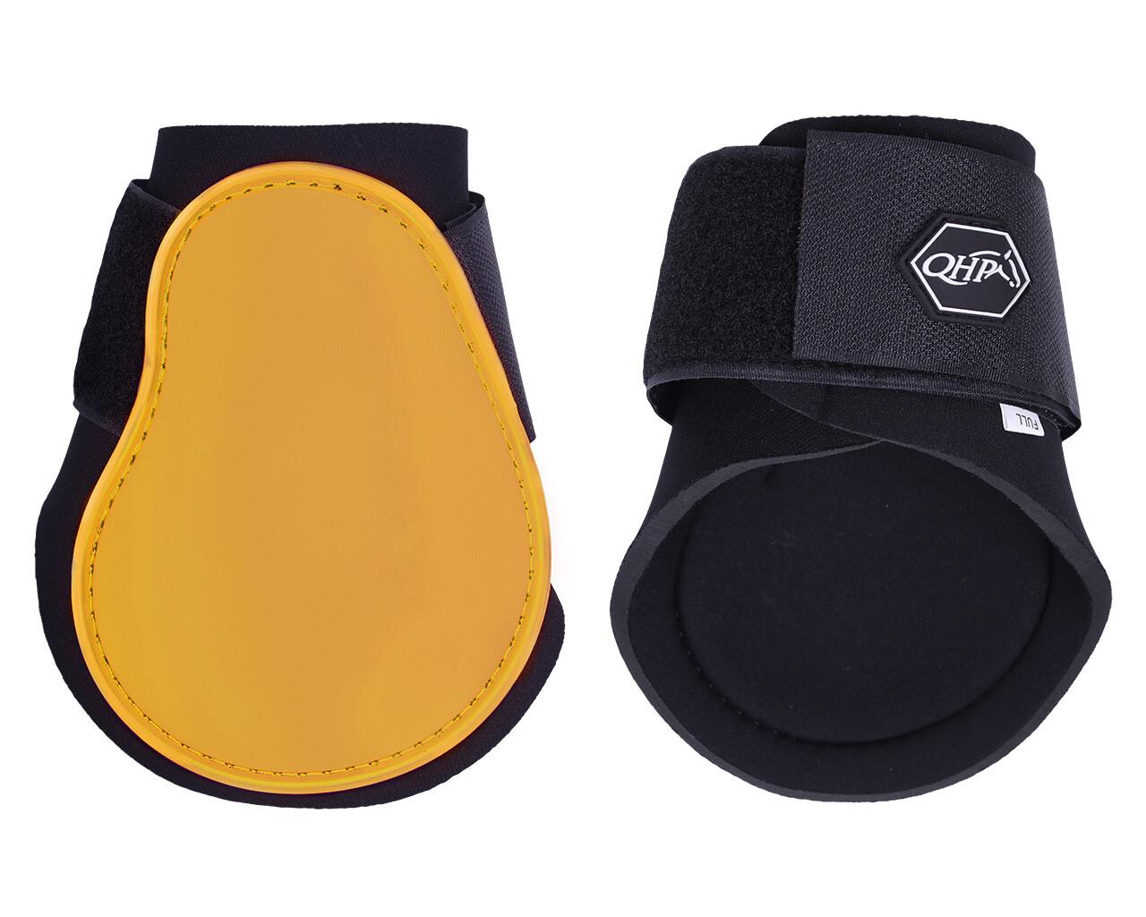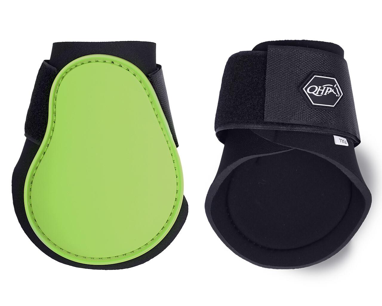 Set of two open fetlock boots with a hard shell and neoprene lining. With Hook-and-loop fastener. Protects the horse's legs against shocks and hits. Available in many colours.