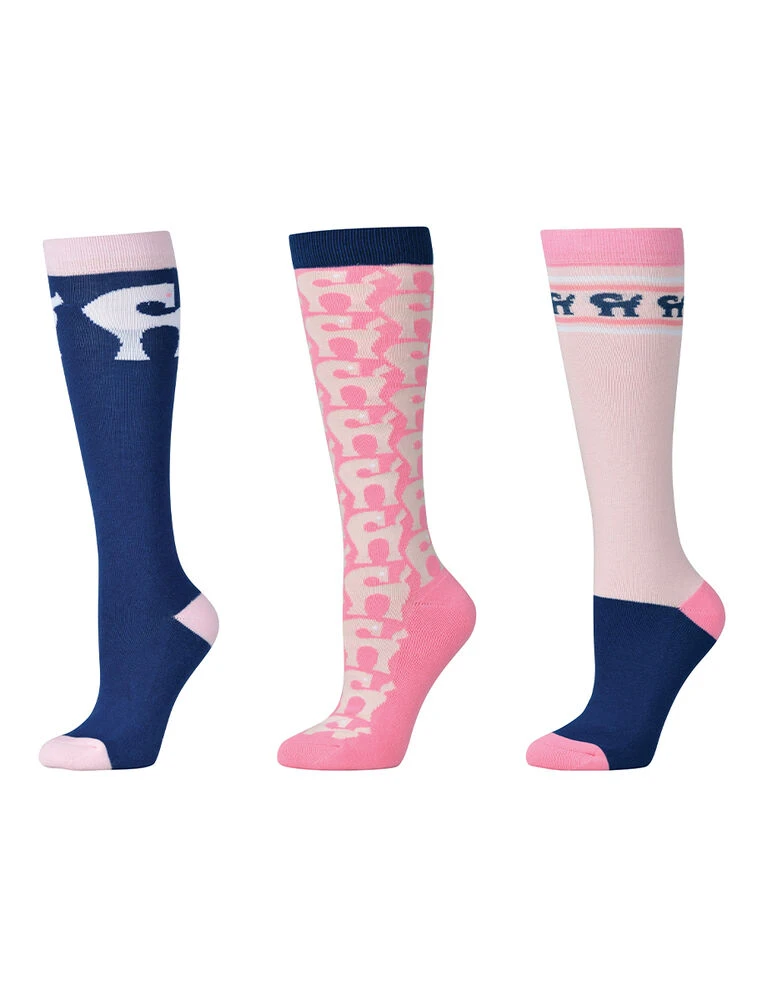 Dublin 3 Pack Socks True Navy/Pink Tulle Pony Adults One Size