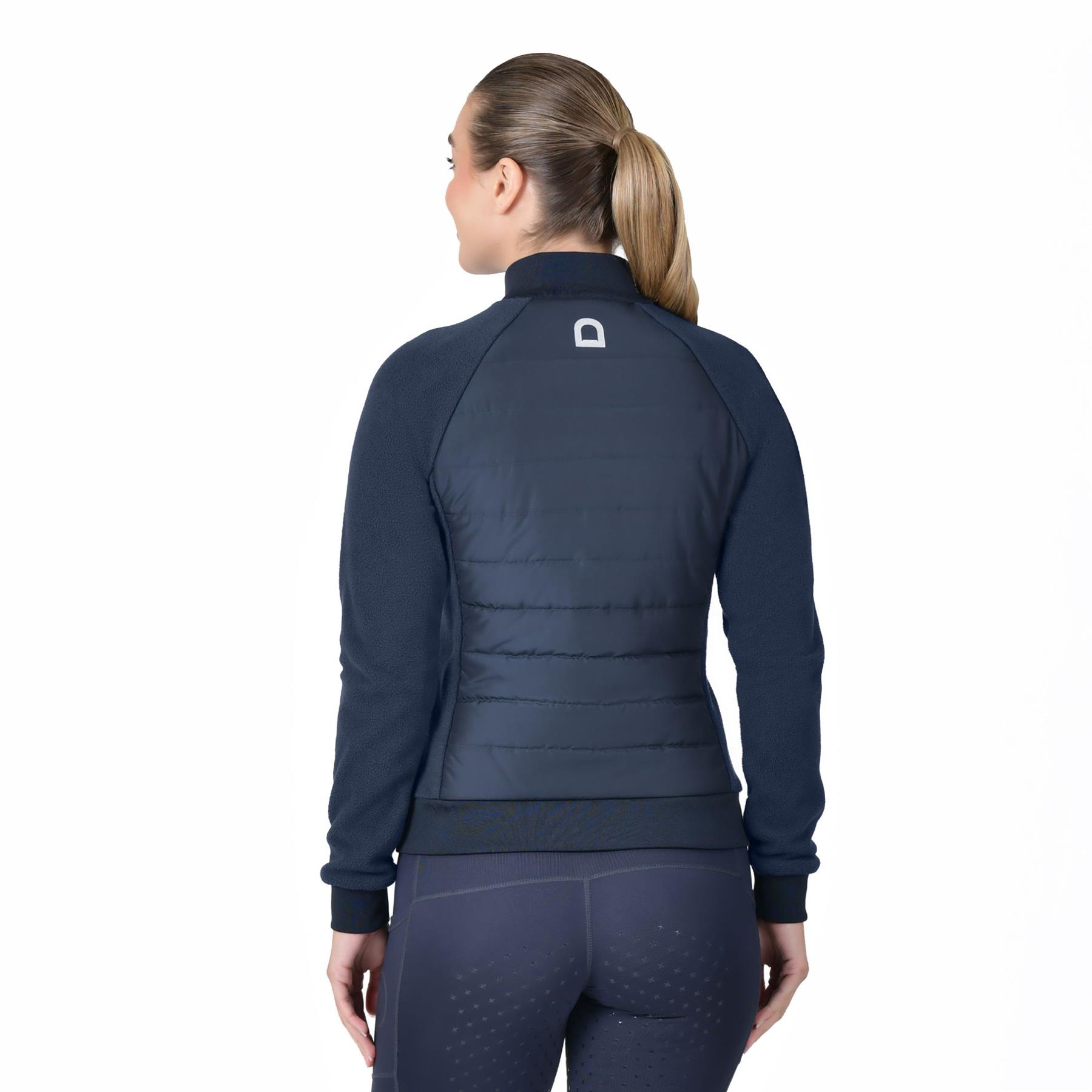 Stay warm and stylish with the Dublin Insulated Hybrid Jacket. Designed for equestrian enthusiasts, this lightweight, showerproof jacket combines function and fashion. With quilted panels filled with wadding on the front and back, it delivers superior warmth where you need it most, while soft fleece side panels and sleeves ensure free movement and comfort. Whether you're tending to your horses at the stables or enjoying a crisp morning ride, this jacket is your perfect companion. The ribbed neck collar, cuffs, and hem enhance its snug fit, while the reflective Dublin 'D' logo adds a touch of style and safety. Finished with a practical two-way zipper and secure zippered pockets, the Dublin Insulated Hybrid Jacket makes cool-weather layering effortless.