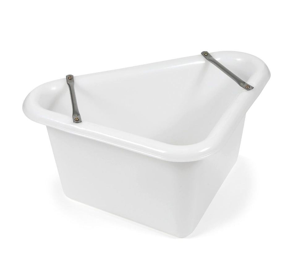 Sturdy corner manger for feeding at any height in the stable. Use with the support frame (supplied separately) to be able to easily remove the manger for cleaning. Complete with anti-waste bars. Frost proof. Dimensions: 65cm x 44cm x 30cm (25.5" x 17.5" x 12").