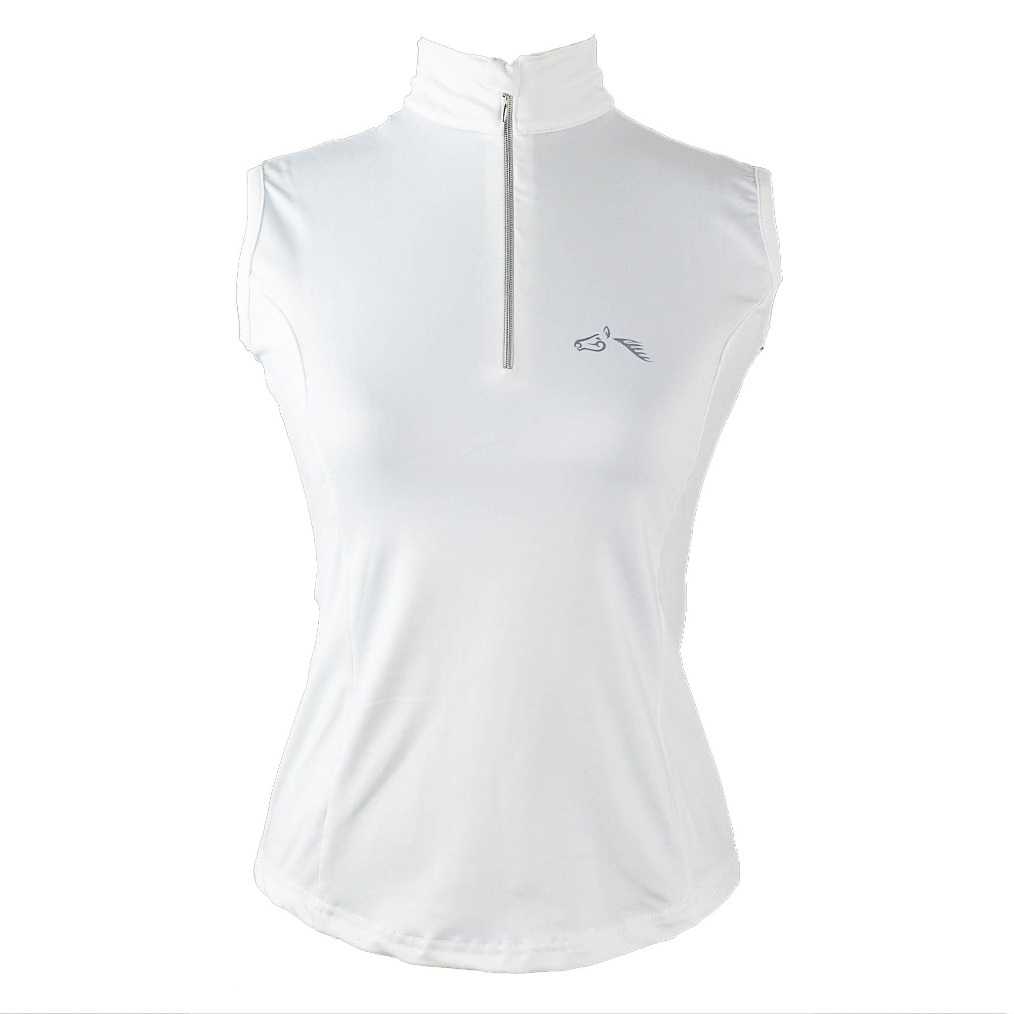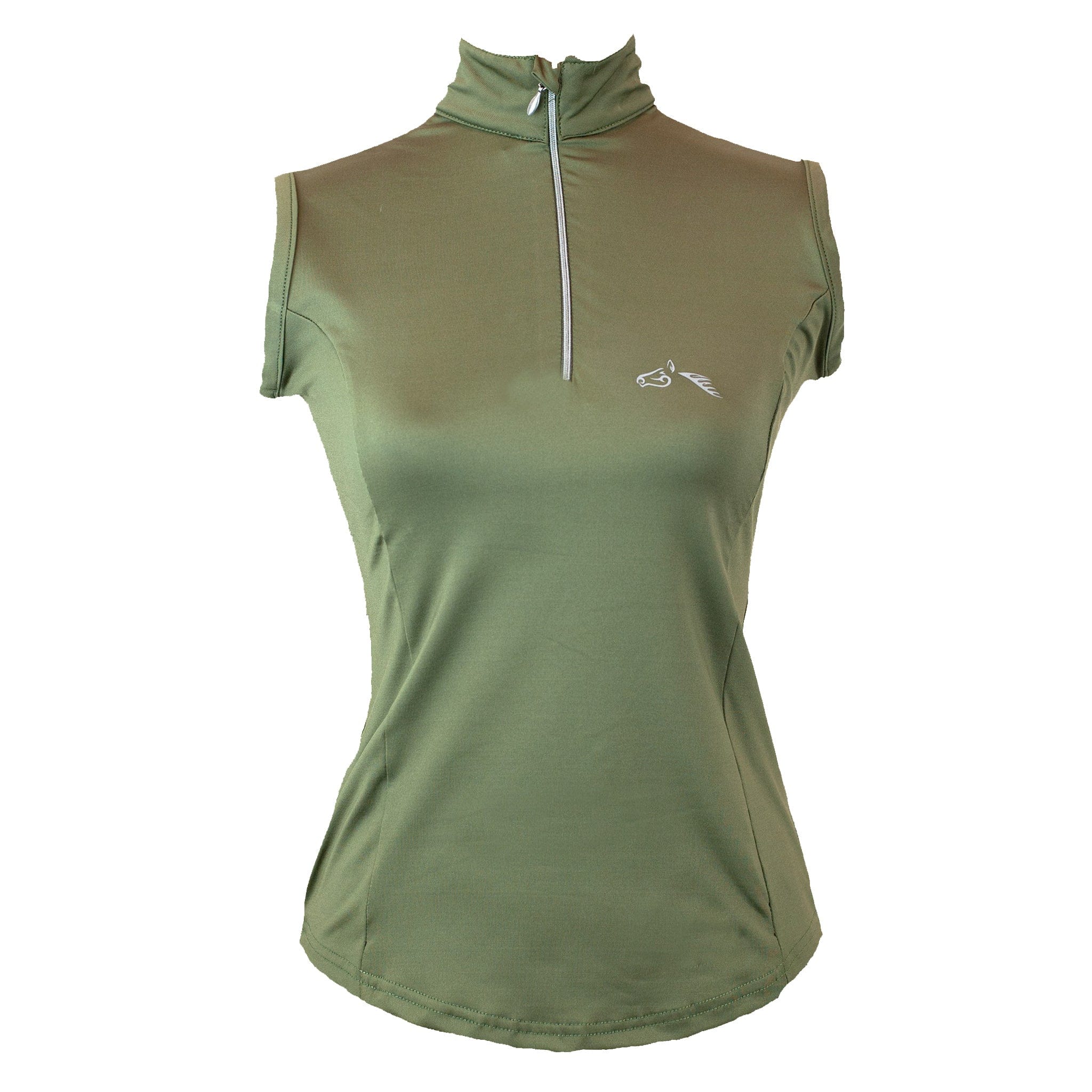 The Gallop Sleeveless Zipped Neck Base Layer is made from technical material to provide all-day comfort. The all-way stretch, chafe-resistant fabric is breathable and moisture-wicking to keep you feeling fresh and cool, and features UPF protection to defend against UV rays, making this sleeveless riding top ideal for summer weather. The stand-up collar and quarter-length front zip allow for versatile styling, while the shaped body provides a flattering fit. Available in Olive Green, Black, Navy Blue, Burgundy, Peacock, or White. If you love a matchy-matchy look, this horse riding base layer teams perfectly with the Gallop High Waist Silicone Knee Patch Riding Tights.