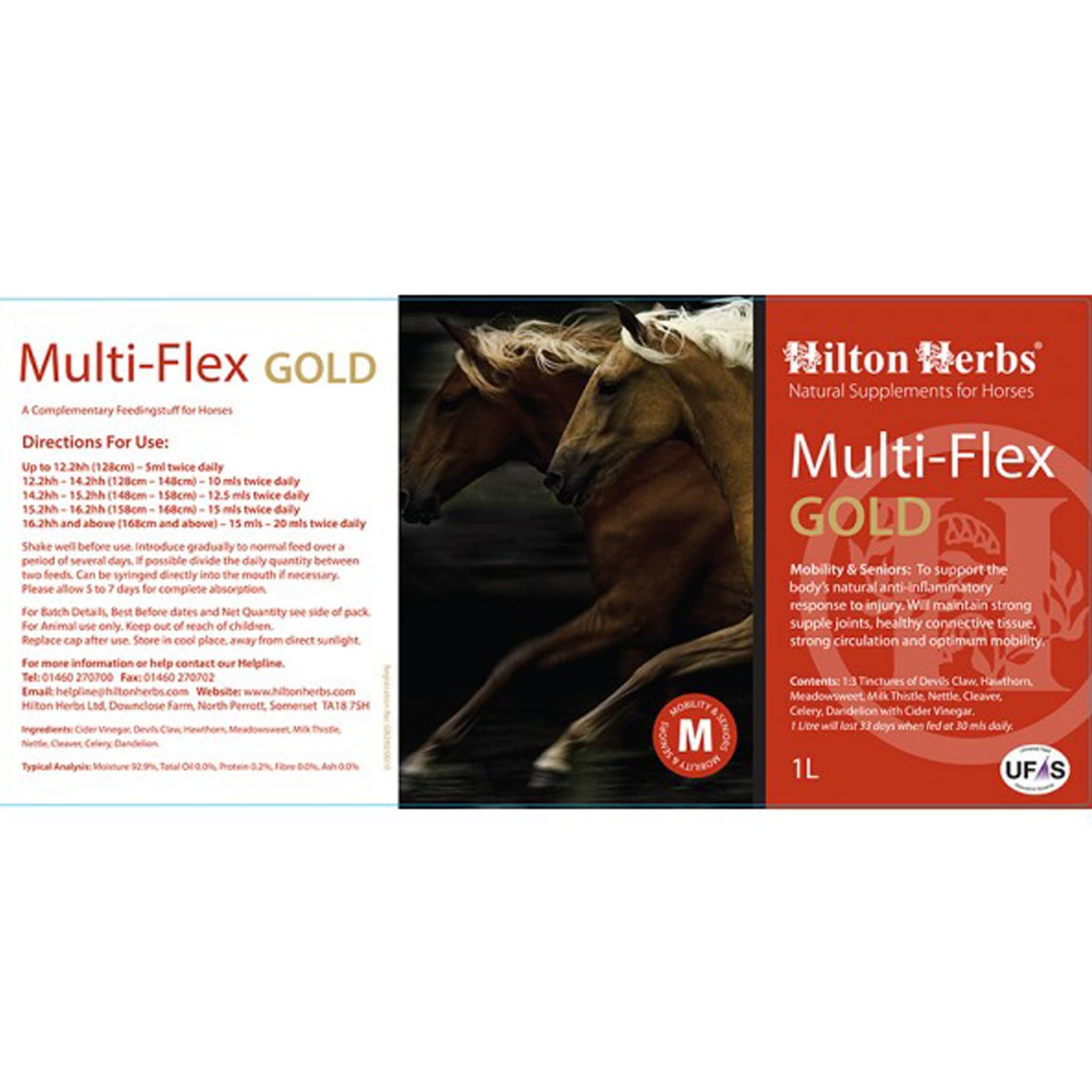 Hilton Herbs Multiflex supports optimum mobility. It contains herbs including devils claw root and nettle, and helps to maintain supple joints and muscles, a healthy circulatory system, and is suitable for horses prone to laminitis.