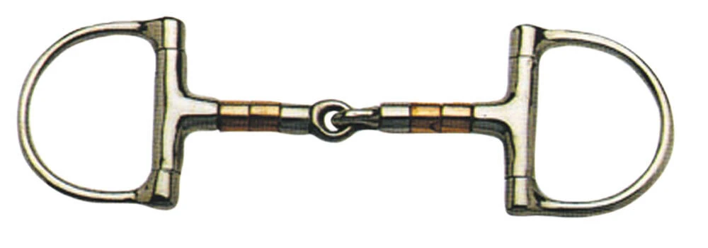 The Dee ring compromises between an eggbutt and a full cheek snaffle, preventing pinching at the corners of the mouth and without the dangers posed by the arms of a full cheek snaffle. The copper rollers help to encourage salivation and prevent the horse from taking hold of the bit. The single joint creates a nutcracker action which puts pressure on the tongue, the roof of the mouth and the bars of the mouth. The Dee ring compromises between an eggbutt and a full cheek snaffle, preventing pinching at the corners of the mouth and without the dangers posed by the arms of a full cheek snaffle The copper rollers help to encourage salivation and prevent the horse from taking hold of the bit The single joint creates a nutcracker action which puts pressure on the tongue, the roof of the mouth and the bars of the mouth