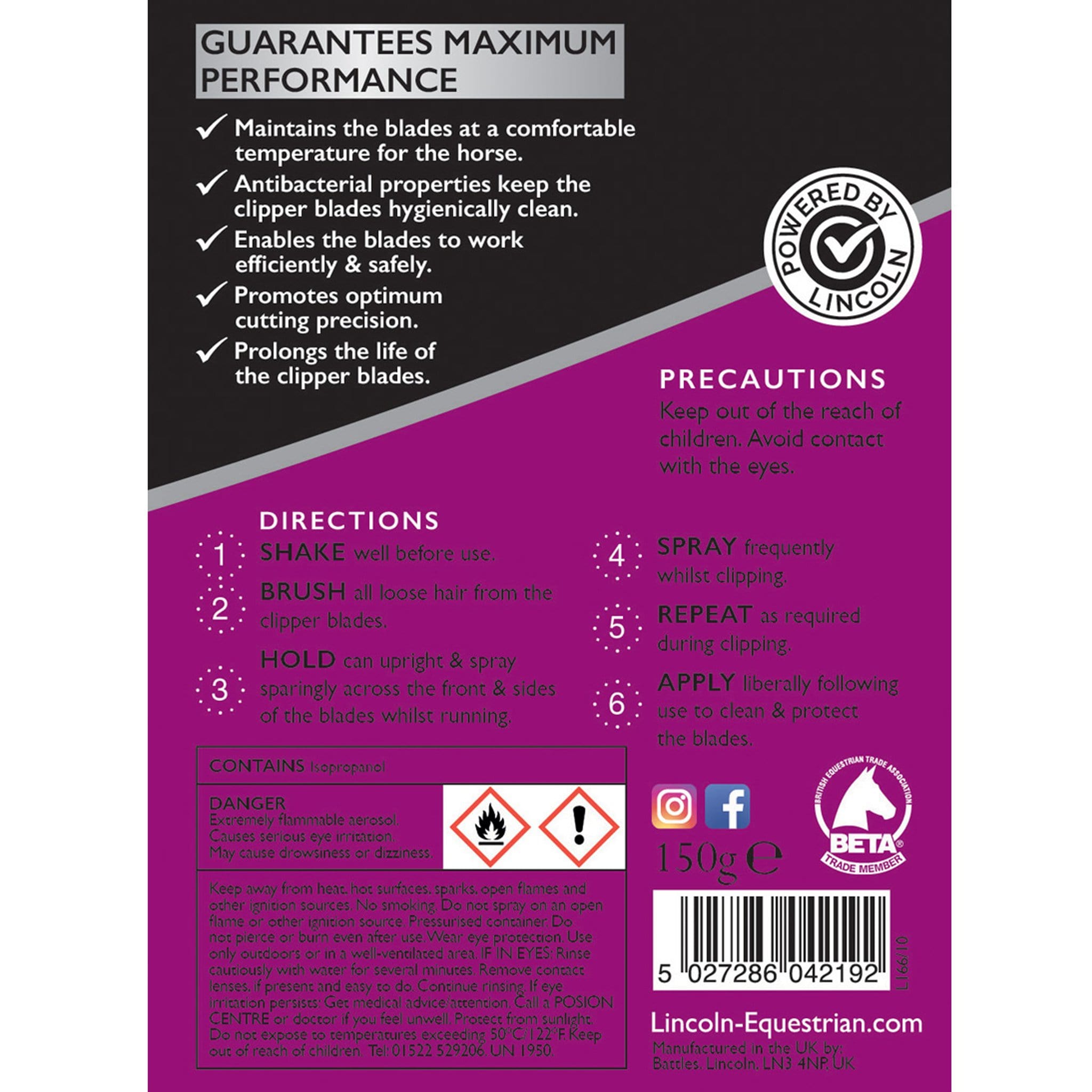Lincoln Clipper OIl is a fine lubricating oil for use with all types of clippers. Contains a powerful antibacterial agent. Cleans, lubricates and disinfects.
