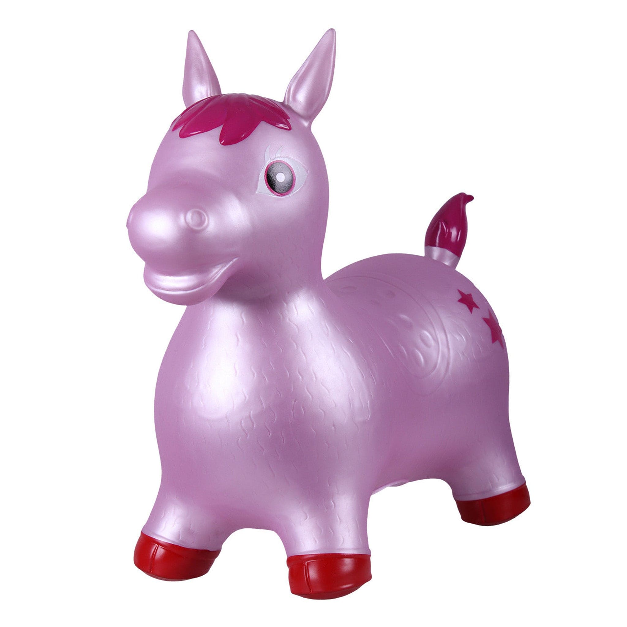 Keep your pony-mad mini equestrian entertained with the QHP Jumpy Horse Pearl. This children's toy bounces like a space hopper for hours of active fun. Made from durable PVC with a pearlescent finish, this little horse features a painted face, mane, tail, hooves, and stars on the quarters, with pointy ears for your child to hold. Suitable for children over 3 years old. Available in Purple, Pink, or Mint Green.