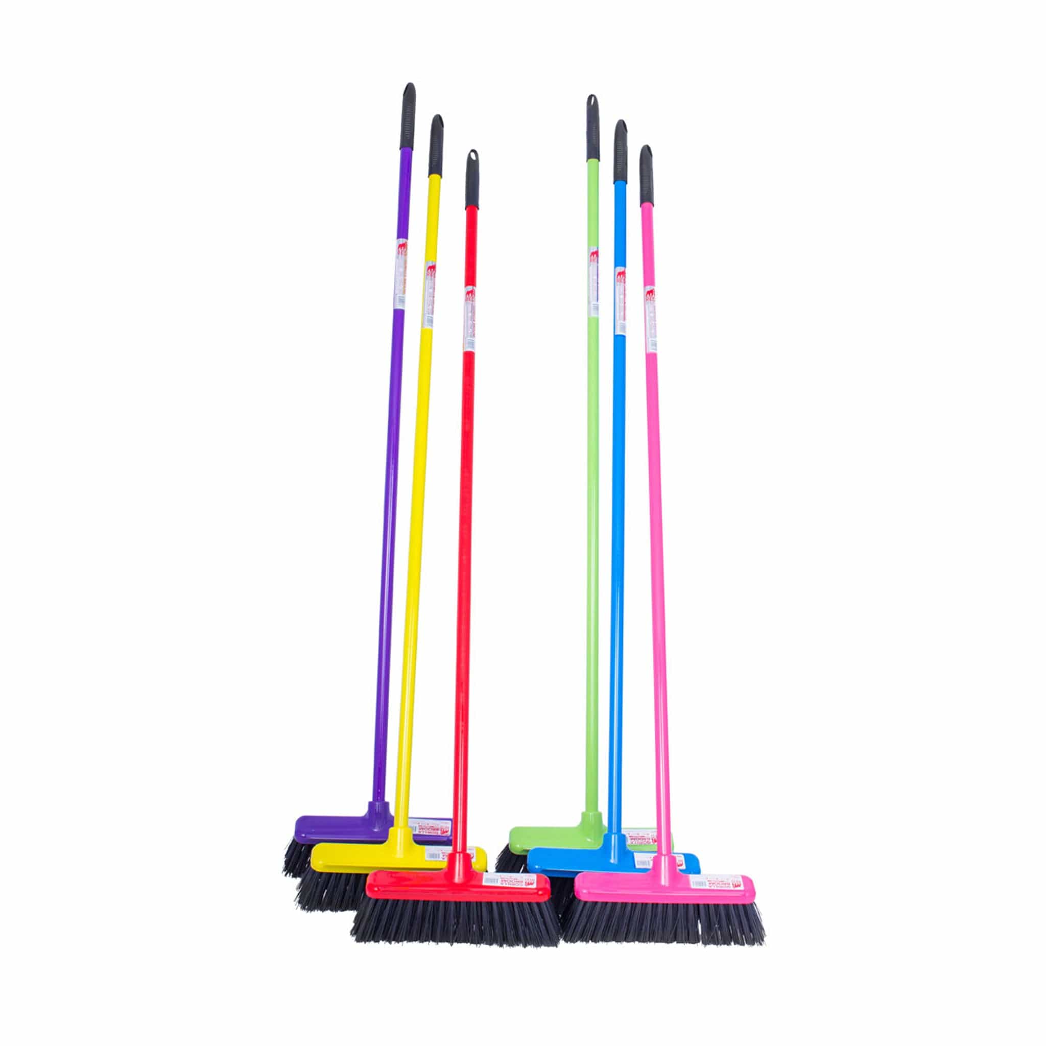 The Red Gorilla Yard Broom is designed to make your job easier. It has an integrated scraper blade, making removing ‘stuck bits’ even easier. The anti-clog channel cuts down flying dust for a clean sweeping action. The Gorilla Broom can be used confidently in wet environments, as the non-porous polymer head and bristles do not soak up any water. Available in Red, Blue, Pink, Pistachio, Yellow or Purple.