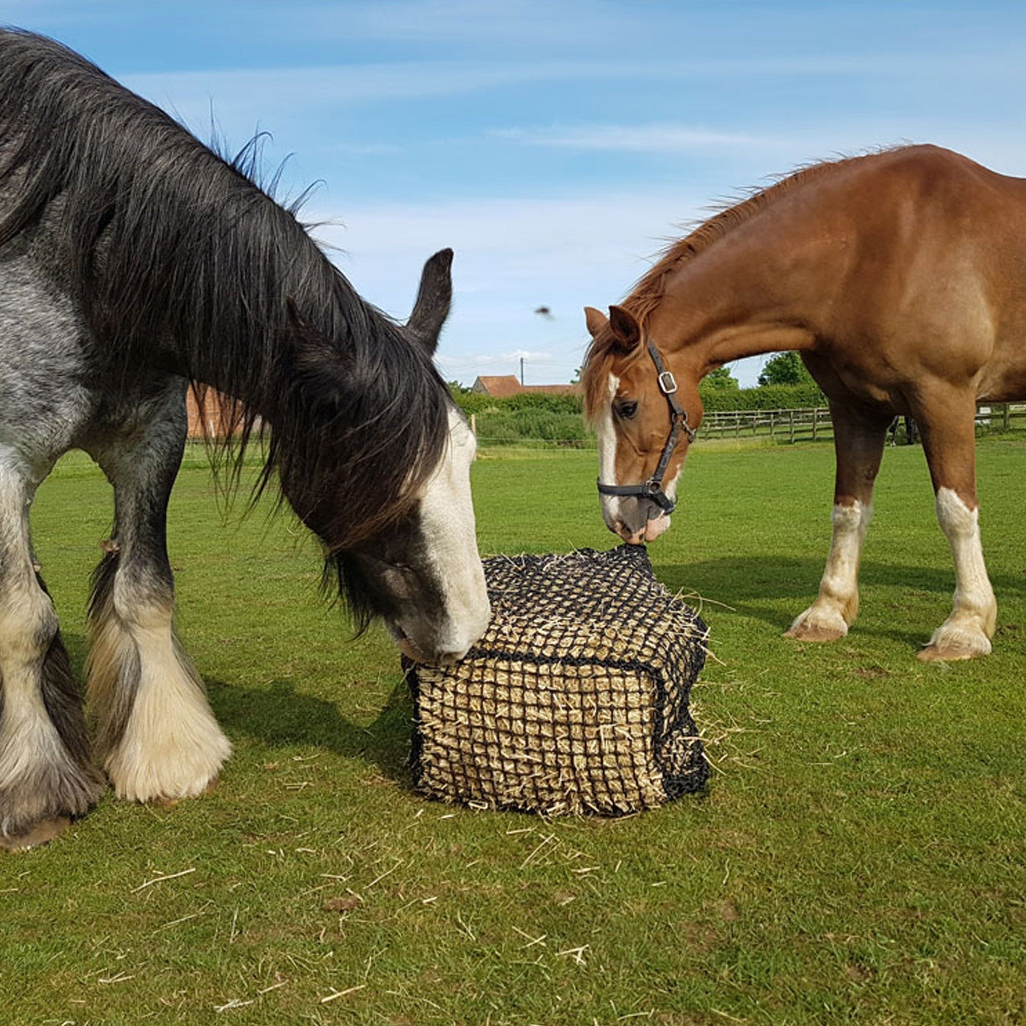 Available in one size: To fit a standard small bale of hay.