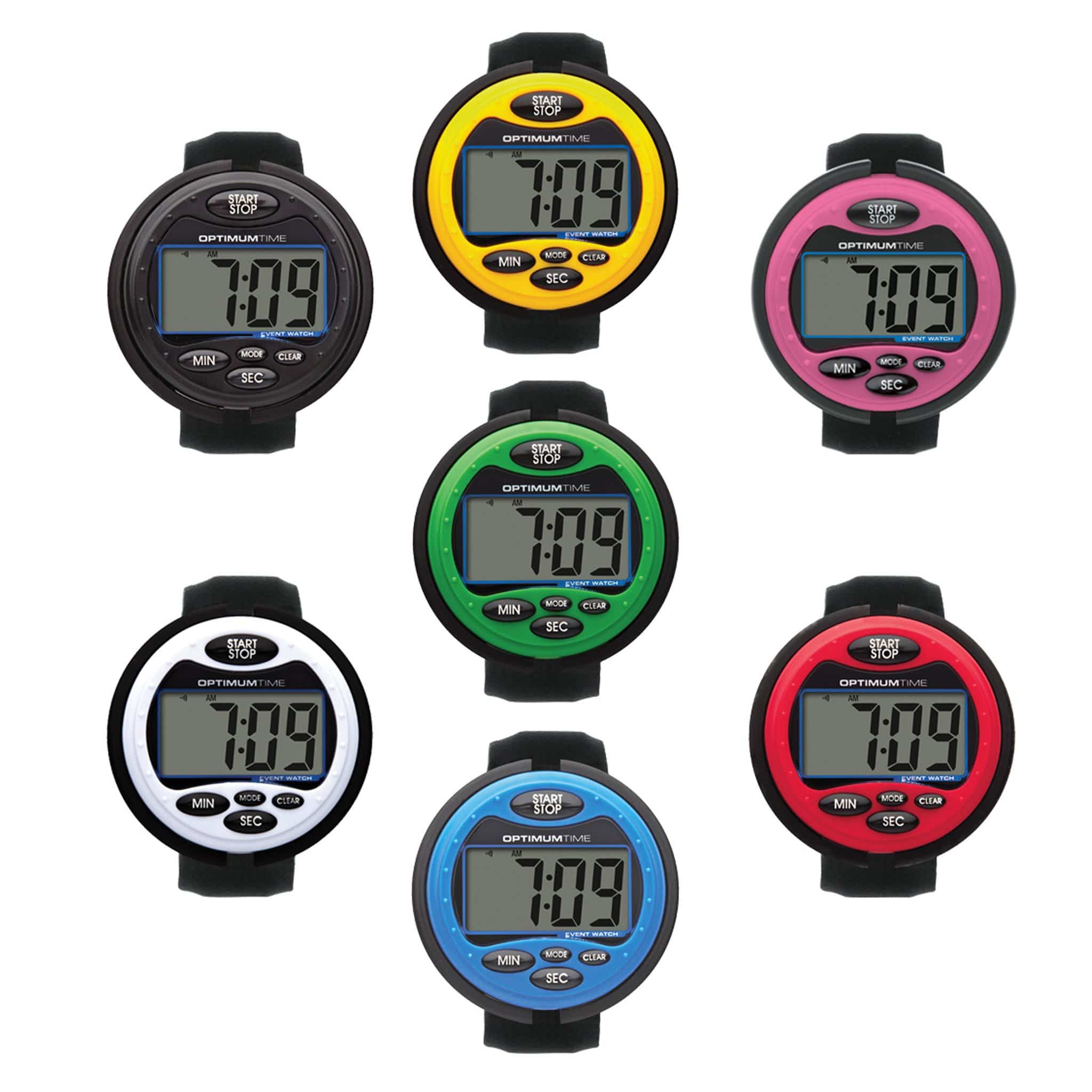 An easy to use Eventing watch with a large clear�LCD (Liquid Crystal Display)�screen with bold digits in a compact and comfortable design. Counts up and down and has an alarm feature. Easy to operate. Download the Ultimate Event Watch Instruction manual. In lots of great colours including yellow, black, blue, green, red, white and pink!